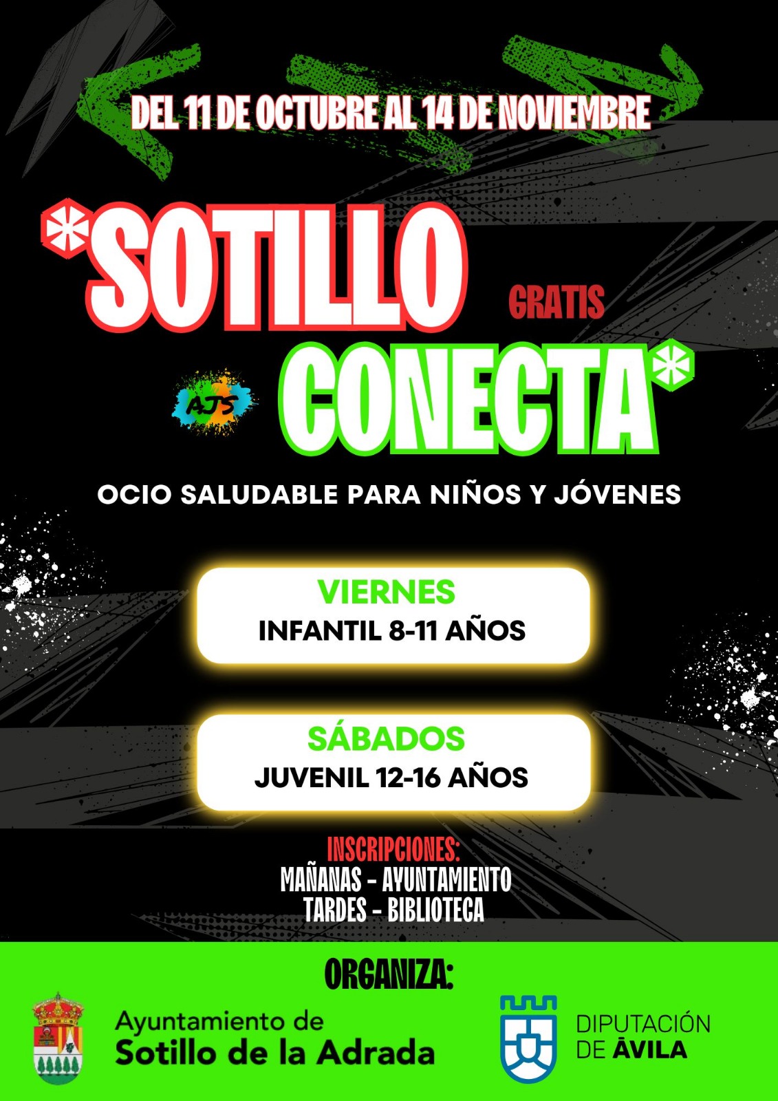 El Ayuntamiento de Sotillo de la Adrada, en colaboración con la Diputación de Ávila y la Asociación Jóvenes Solidarios (AJS), pone en marcha Sotillo Conecta, un programa de ocio saludable para niños y jóvenes con actividades dinámicas, creativas y llenas de diversión.