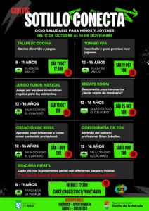 El Ayuntamiento de Sotillo de la Adrada, en colaboración con la Diputación de Ávila y la Asociación Jóvenes Solidarios (AJS), pone en marcha Sotillo Conecta, un programa de ocio saludable para niños y jóvenes con actividades dinámicas, creativas y llenas de diversión.
