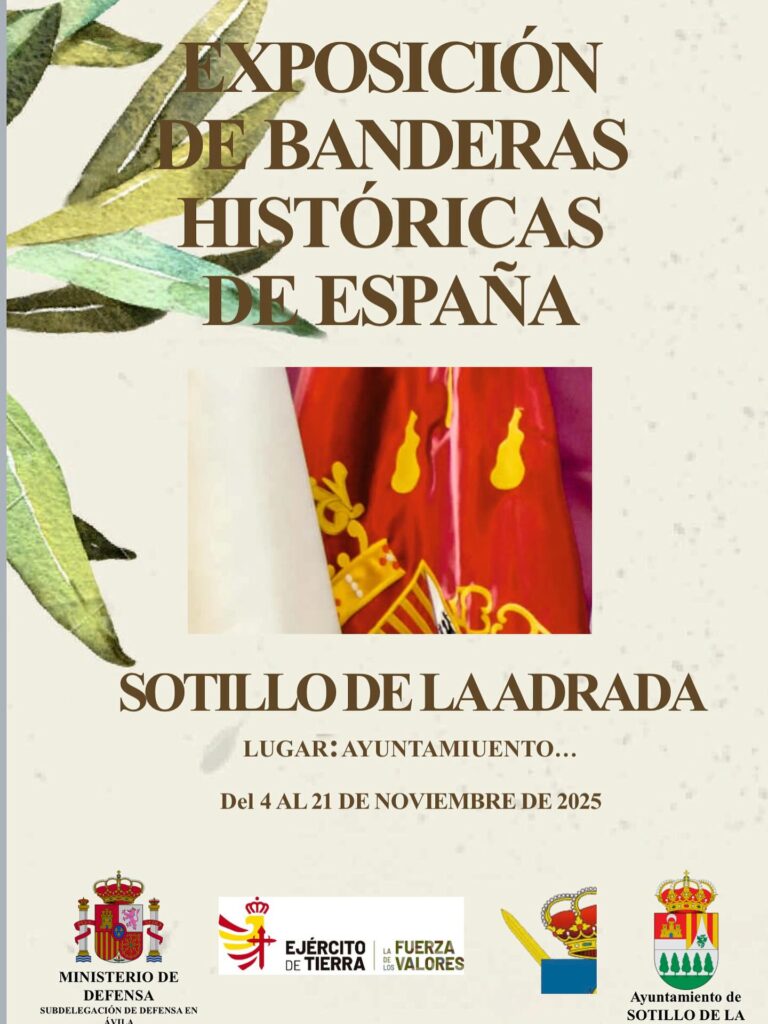 Exposición de Banderas Históricas de España – Sotillo de la Adrada 📅 Fechas: Del 4 al 21 de noviembre de 2025📍 Lugar: Ayuntamiento de Sotillo de la Adrada🏛️ Organizan: Ministerio de Defensa, Ejército de Tierra y Ayuntamiento de Sotillo…