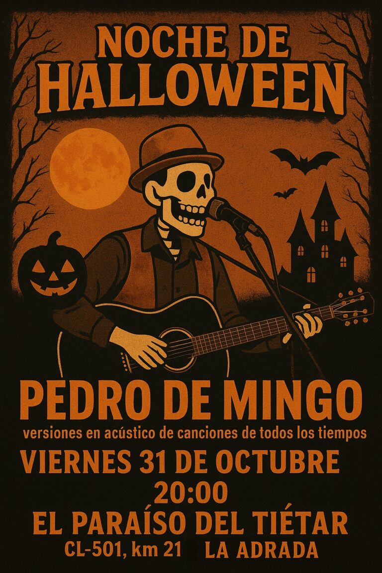 🎃 Noche de Halloween con Pedro de Mingo en La Adrada 📅 Fecha: Viernes, 31 de octubre de 2025🕗 Hora: 20:00 h📍 Lugar: El Paraíso del Tiétar (CL-501, km 21, La Adrada) Celebra la noche más terrorífica del año con…