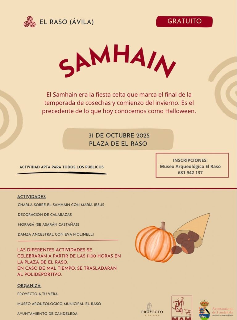🍂 Samhain 2025 en El Raso (Ávila) 🔥 El 31 de octubre, revive la antigua fiesta celta del Samhain, el origen de lo que hoy conocemos como Halloween 🎃Una jornada para celebrar el final de la cosecha y la llegada…