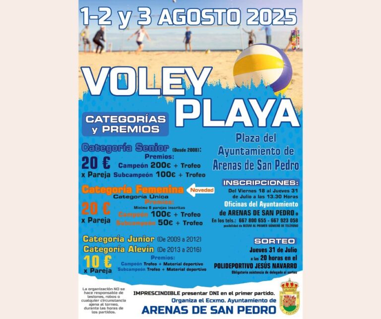 24 julio, 2025DeporteVoley Playa – Arenas de San Pedro 2025Continuar leyendoVoley Playa – Arenas de San Pedro 2025